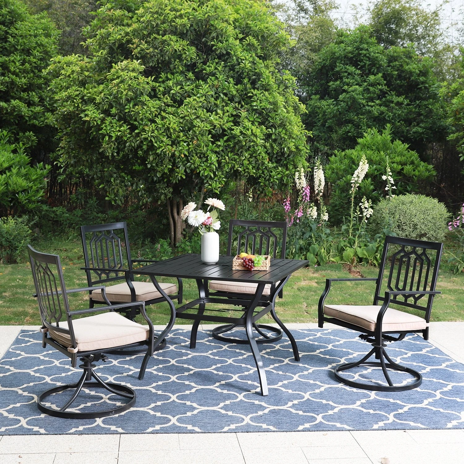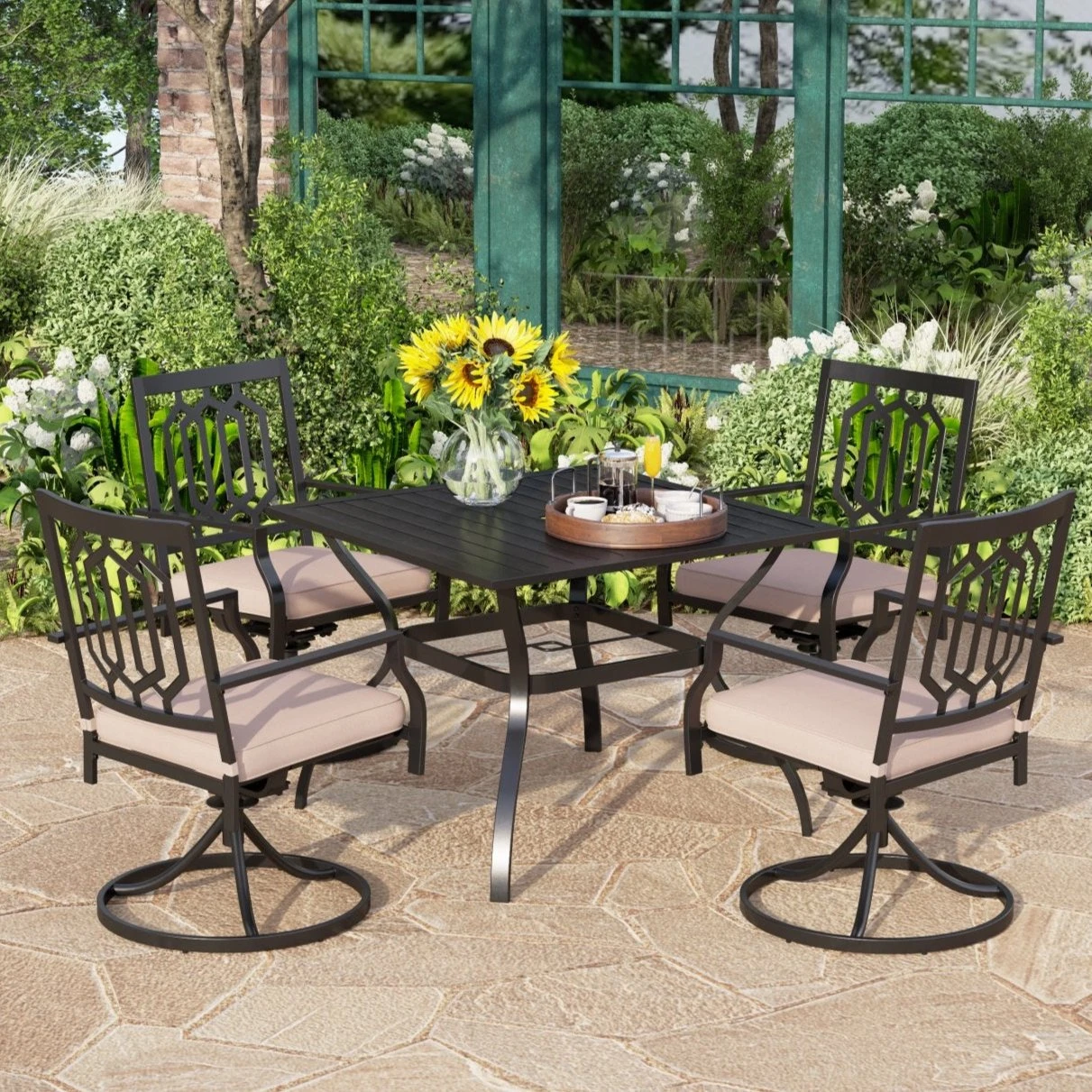 - Spacious chairs and tables for four or more people provide you a wonderful time with your families and friends. Soft cushions with a thickness of 2.7″ make you comfortable and relax.