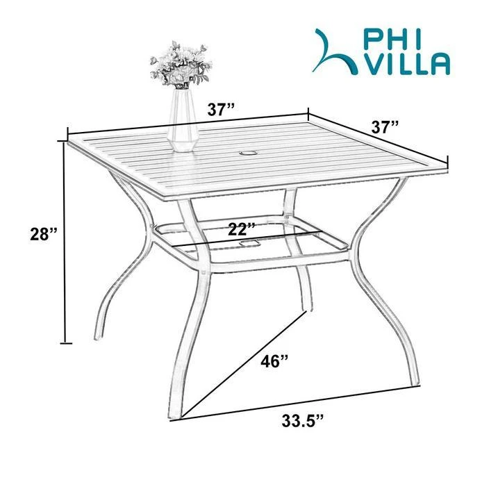 - Table Size: L 37″ x W 37″ x H 28″, Diameter of umbrella hole:1.57″;