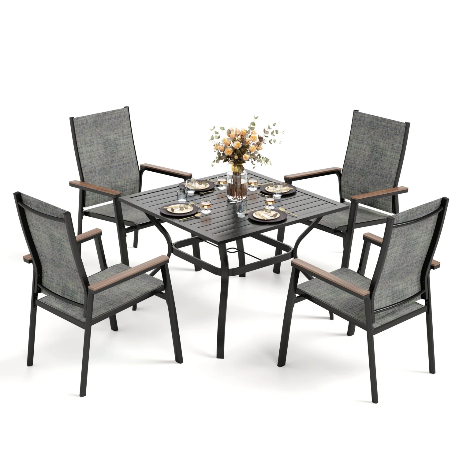 - Rust Resistant: Powder-coated aluminum frames for anti-rust and weather resistance. Easy maintenance, stackable for space-saving, and lightweight for easy mobility.