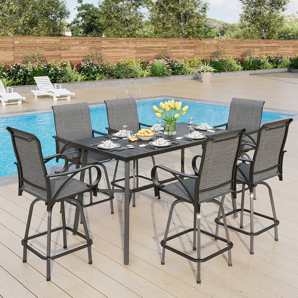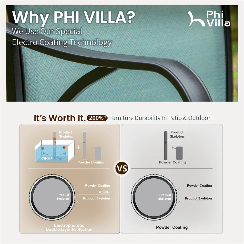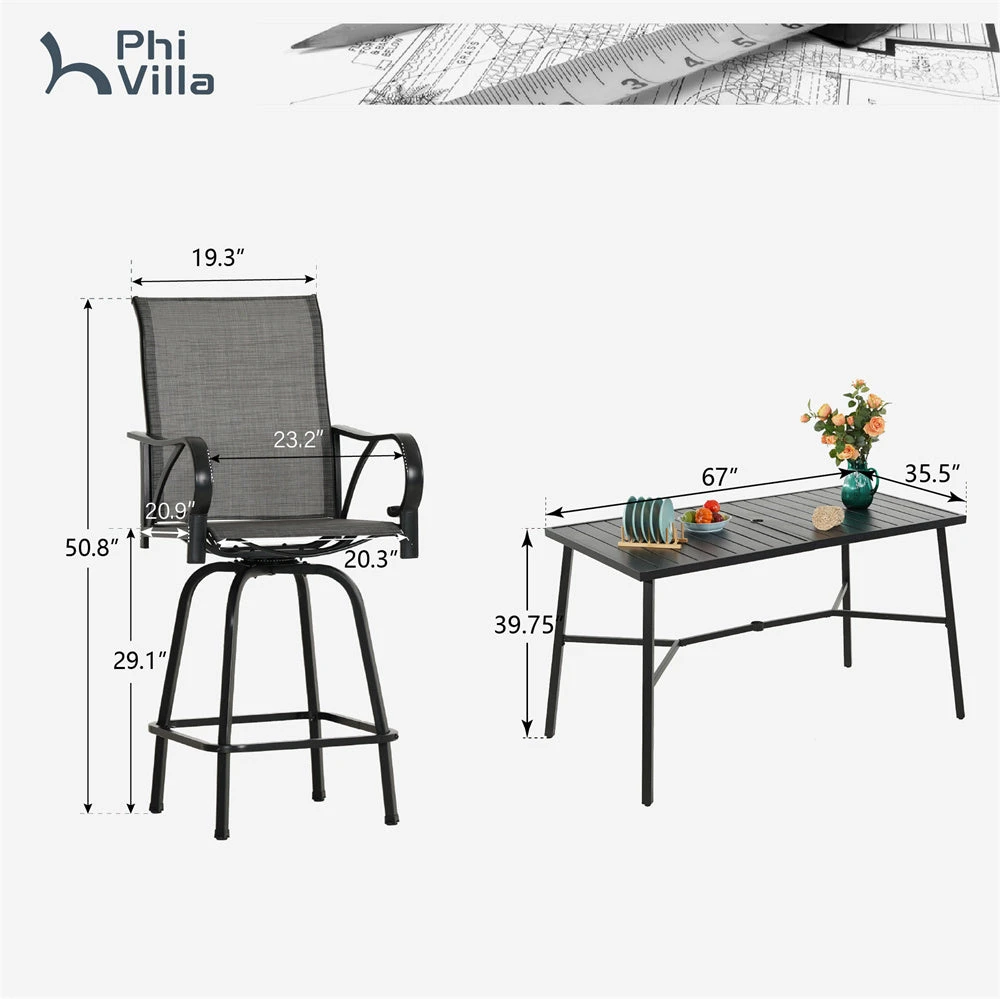 - Versatile Use: Powder e-coating metal slatted tabletop with 1.97″ umbrella hole for you to have more choices on umbrellas.
