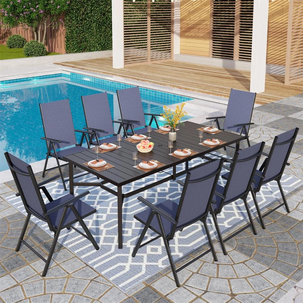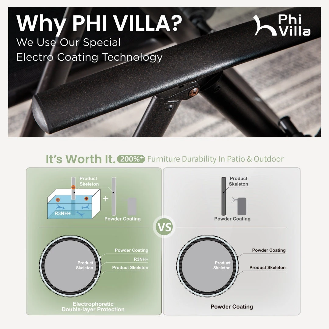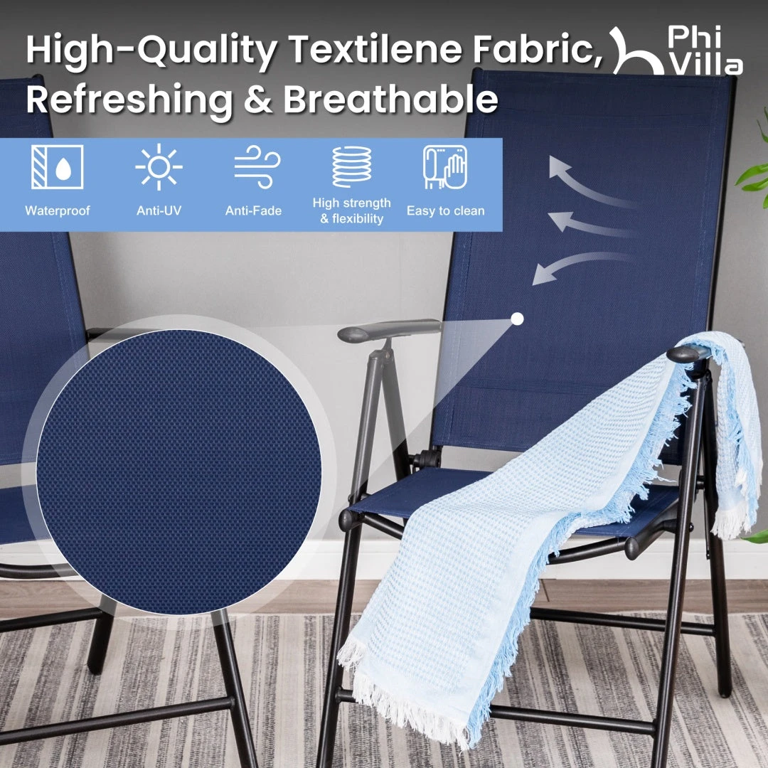 - Adjustable Comfort: The patio chair back can be reclined from 100° to 130°, letting you sit or lie down comfortably for dinner, work, reading, or relaxing. It’s easy to fold without any assembly, saving you space and effort