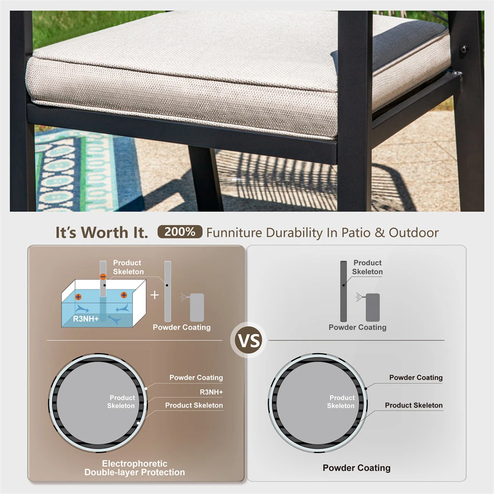 - Soft Cushions: The 3.1″ thick cushion with a cover made of CUSHION PROTMÂ fabric (water-repellent, oil-resistant, and stain-resistant) will offer comfort and durability.