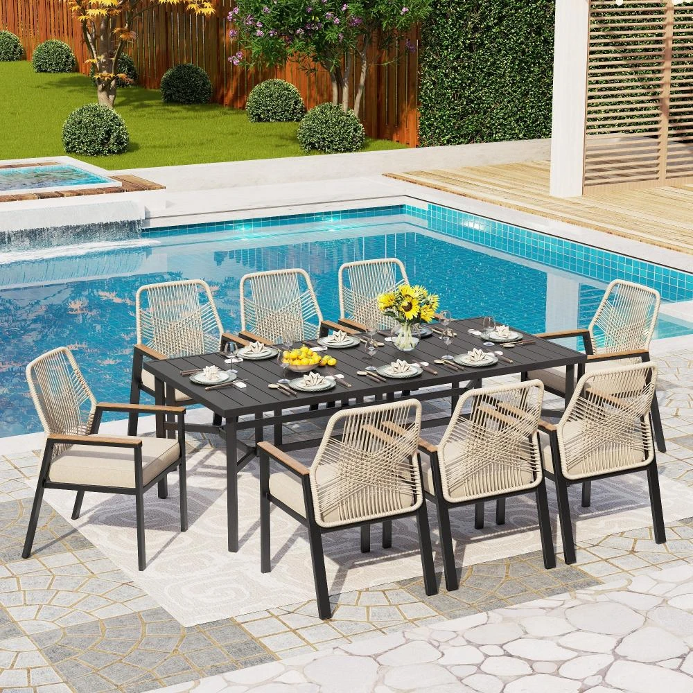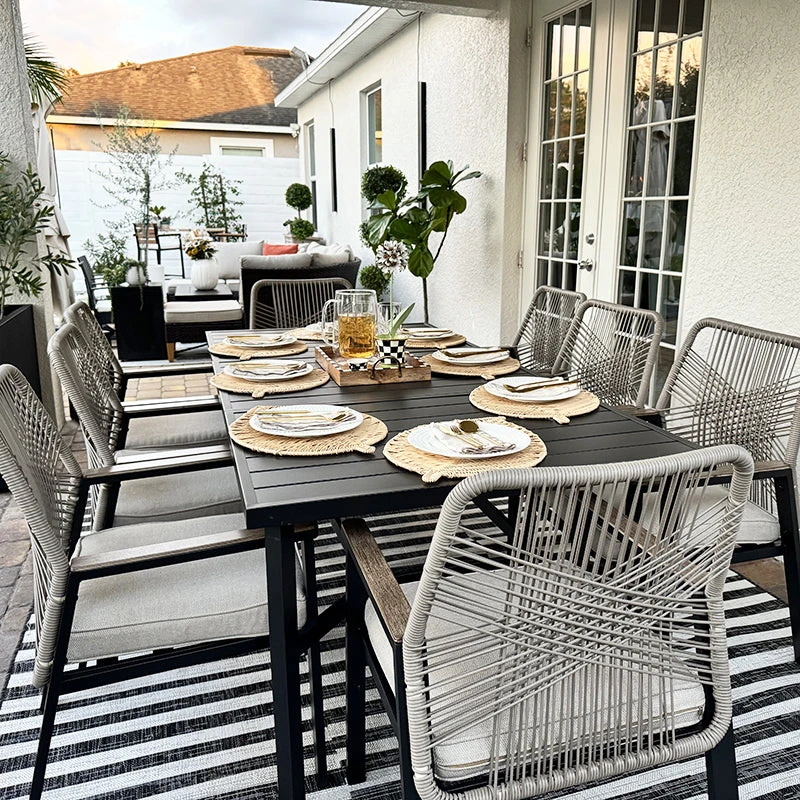 - Long Table for 8: Exclusive long table design for 8 adults, offering large family and friend gathering spaces.