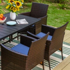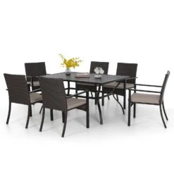 PHI VILLA 7-Piece Outdoor Dining Set With Rattan Cushioned Chairs & Steel Panel Table