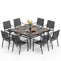 9-Piece Patio Dining Set With 60″ Large Square Table For Garden, Big Family PHI VILLA