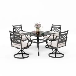 PHI VILLA 5-Piece Outdoor Patio Dining Set With Wood-look Table And 4 Pattern Swivel Chairs