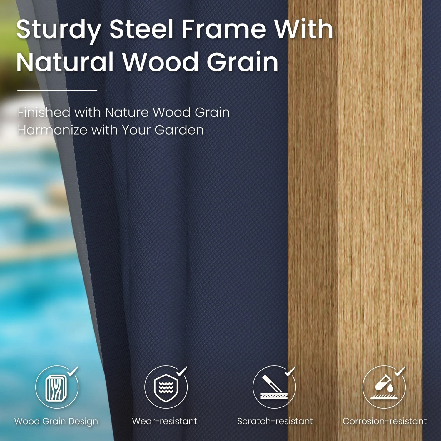 - Sturdy Steel Frame with Natural Wood Grain: This gazebo features a durable steel frame finished with natural wood grain, harmonizing beautifully with your garden’s aesthetic.