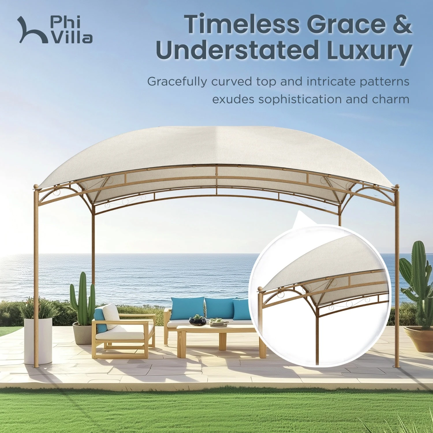 - Timeless Grace & Understated Luxury: This Gazebo features a gracefully curved top and intricate patterns, adding sophistication and charm to your outdoor space for relaxation and entertaining.