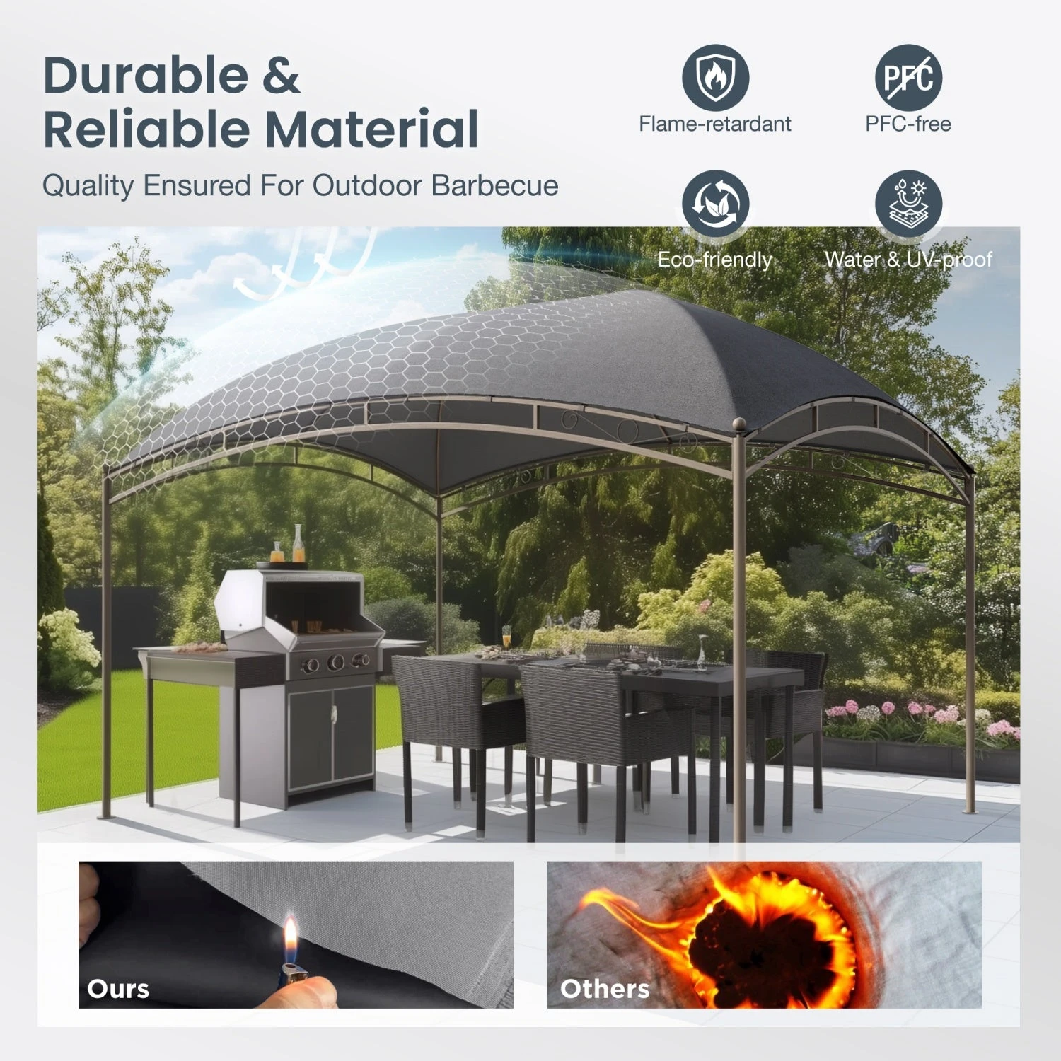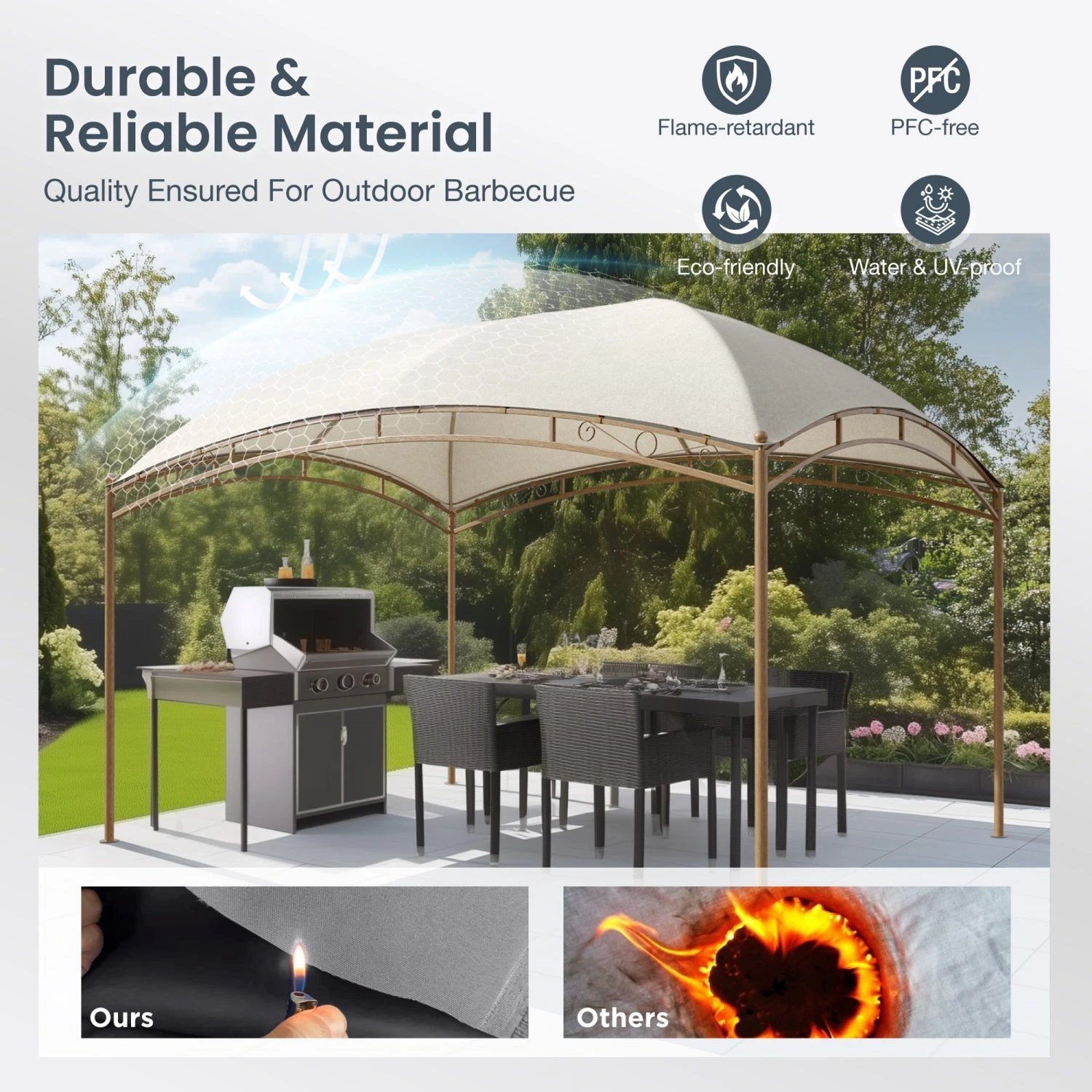 - Durable & Reliable Material: Constructed from flame-retardant, eco-friendly PFC-free materials, this gazebo ensures stability with Velcro fixing, a thickened steel tube, and an anti-tipping kit for reliable outdoor use.