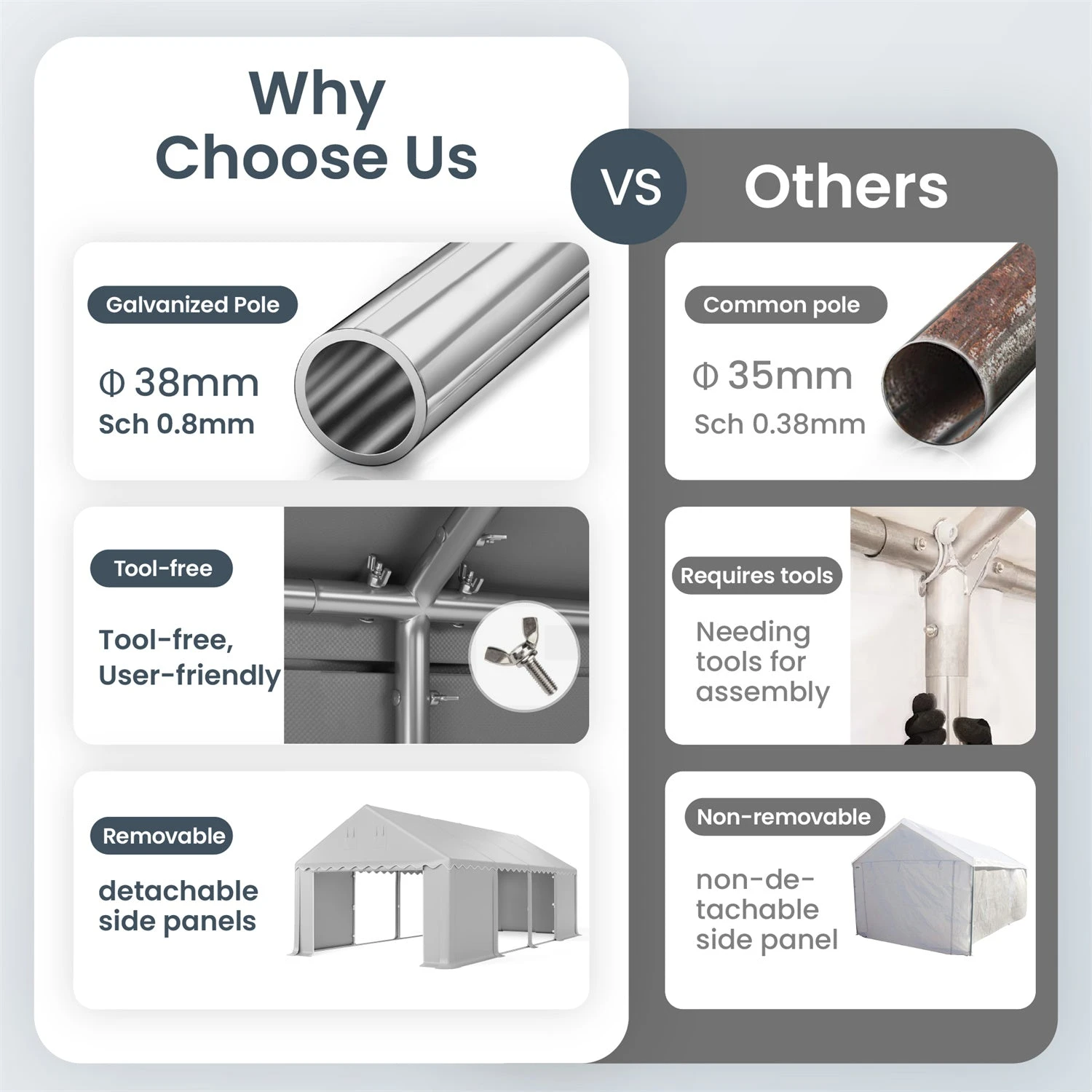 Galvanized Steel Frame & Waterproof PE Tarp