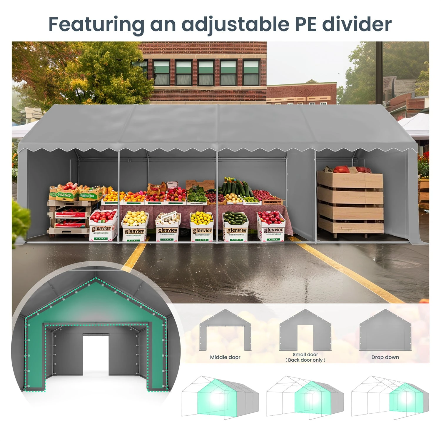 - Versatile Removable Side Panels:Â The tent’s removable side panels can easily transform into side doors, offering flexibility for access and ventilation tailored to your event.