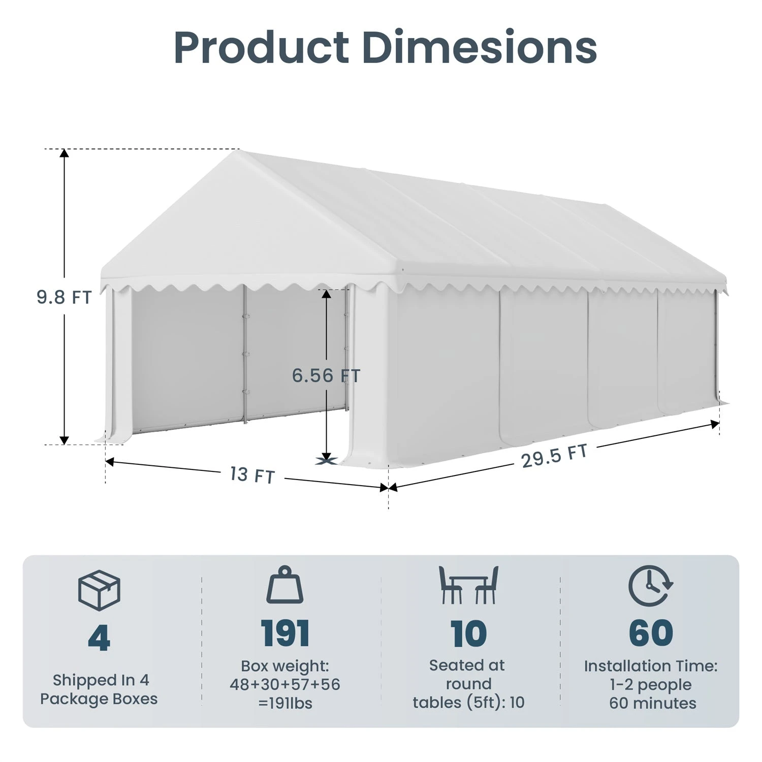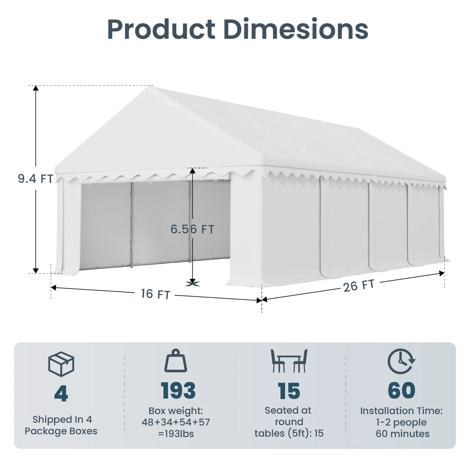 13ft. W x 30ft. D x 9.8ft. H | 16ft. W x 26ft. D x 9.4ft. H | 20ft. W x 40ft. D x 10ft. H