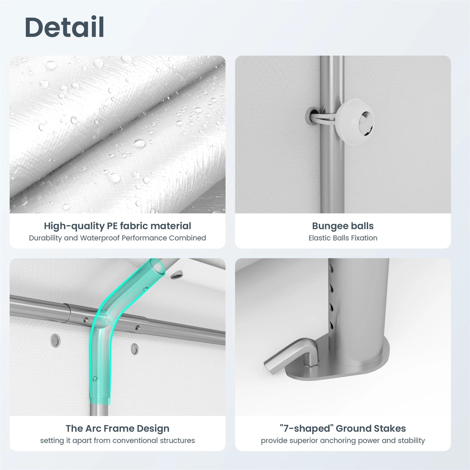 - Quick Assembly Structure: All frame connections utilize snap-button structures that are tool-free and user-friendly, allowing for quick and hassle-free assembly and disassembly, making the setup process faster and more convenient.