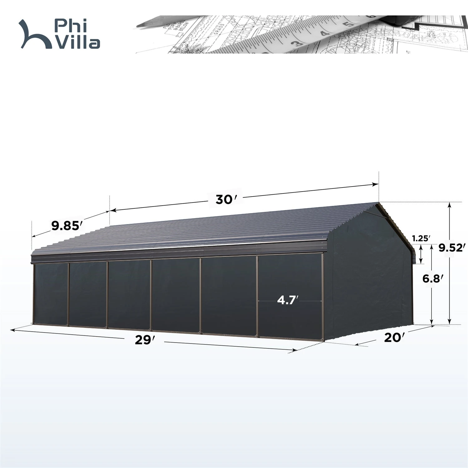 20ft. W x 30ft. D x 9ft. H