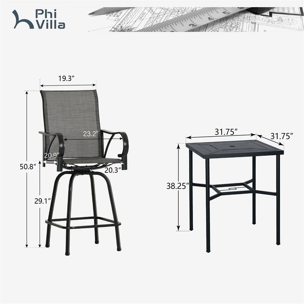 - Premium Material: The patio bar table takes two anti-rust treatments and is made of weather-resistant metal steel, which is very sturdy and durable for long-term indoor and outdoor use. The bar stools are rust-resistant and easy to clean.