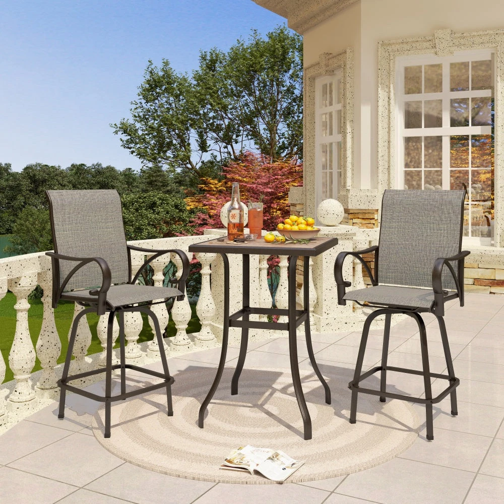 - Premium Material: Made of breathable textilene mesh fabric & powder-coated steel frame, these bar stools are fade and rust-resistant and easy to clean. Curved armrests and widened seats make you more comfortable and relaxed.