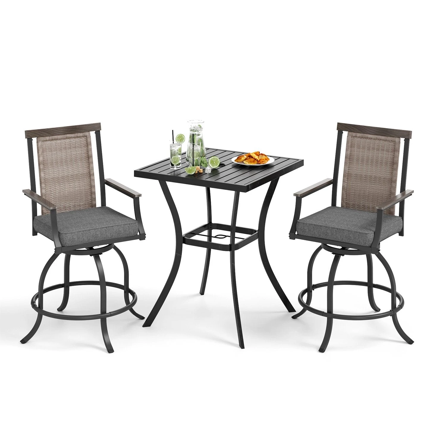 - Infinite Comfort: Our 360° patio swivel bar chairs are designed for ultimate comfort, with a high backrest, curved armrests, and a relaxing footrest. You’ll stay comfortable even after long periods of sitting.