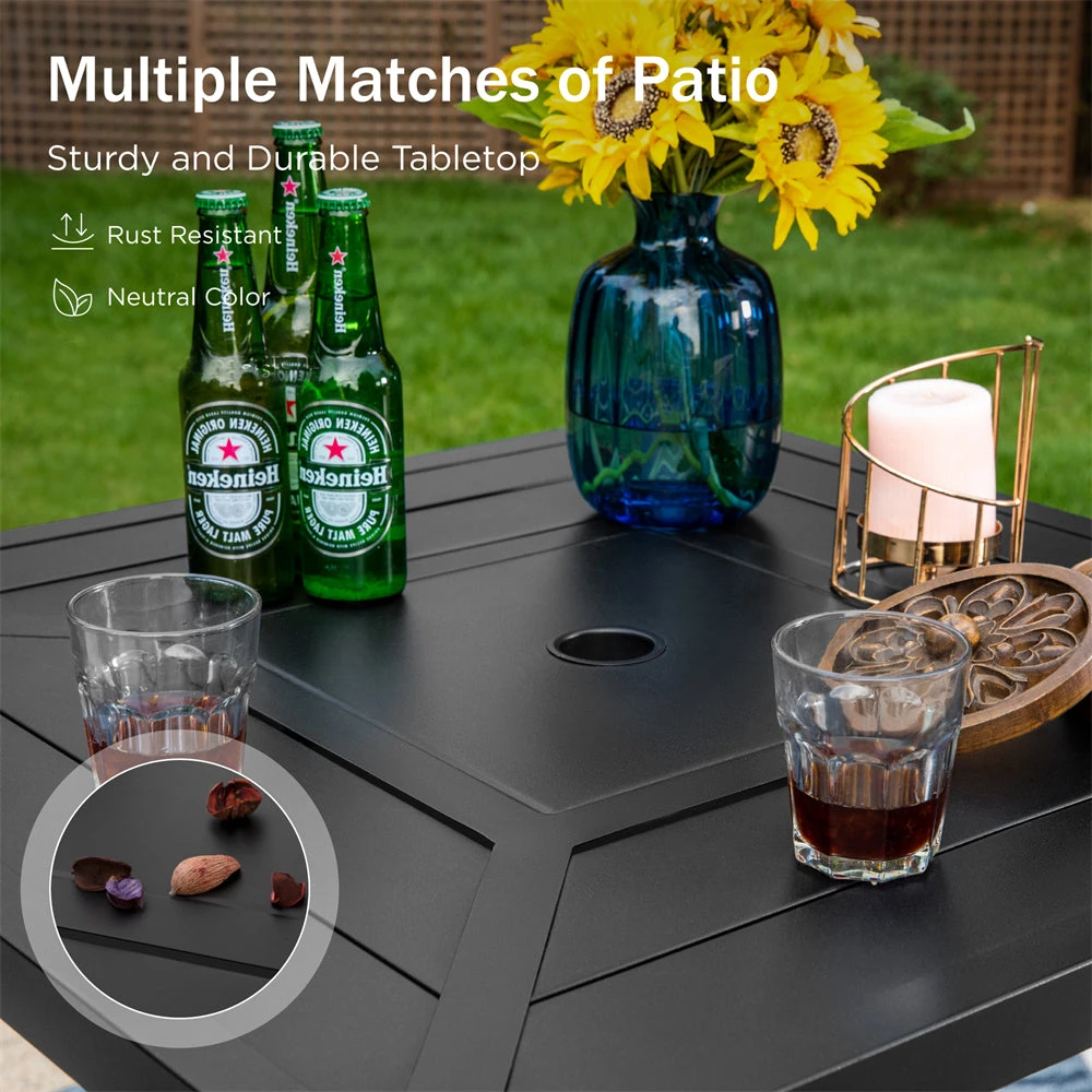 - Patterned Table: 32”L× 32”W× 39.4”H; Umbrella Hole: 1.57″