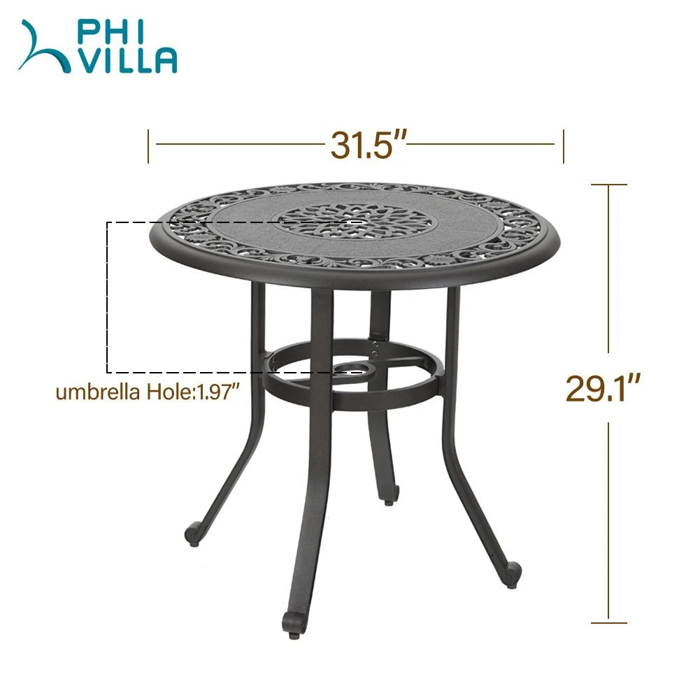 SKU: CGHPD 6686612783296 Categories: Cast Aluminum Furniture, Outdoor Dining Tags: Brand_Phi Villa, Category_ Patio Dinig Table, Material_Cast Aluminum, Price_$100 to $300, With_Round Table