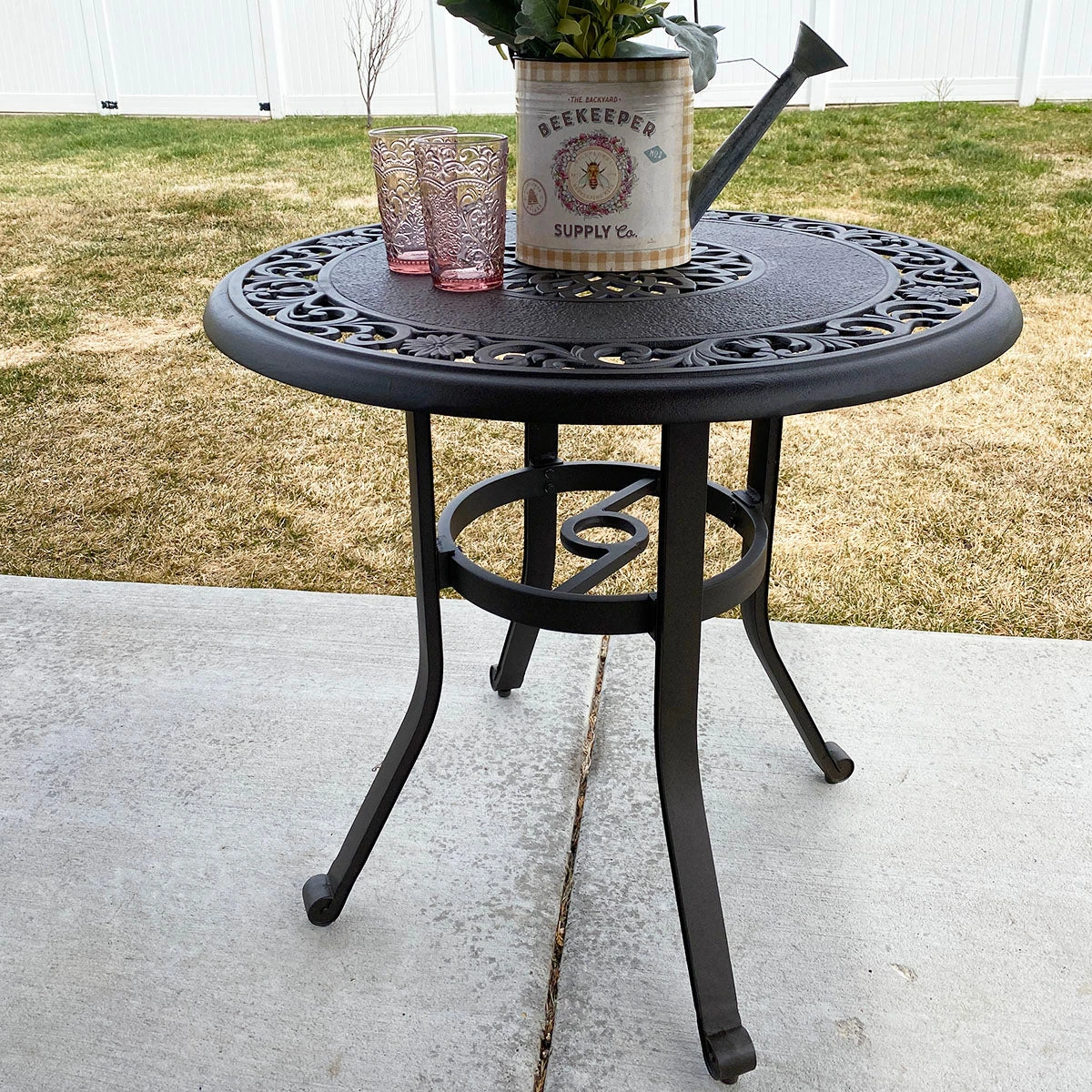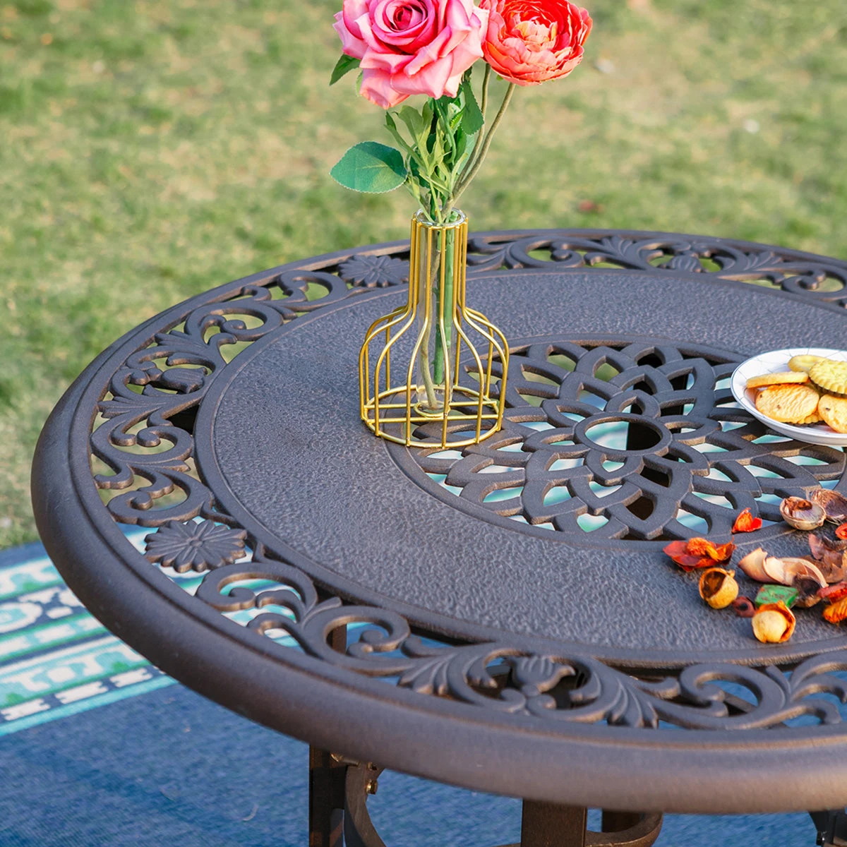 - Special Design: Cast Aluminum table top with pattern design is in one body and strong legs for outdoor long use ;