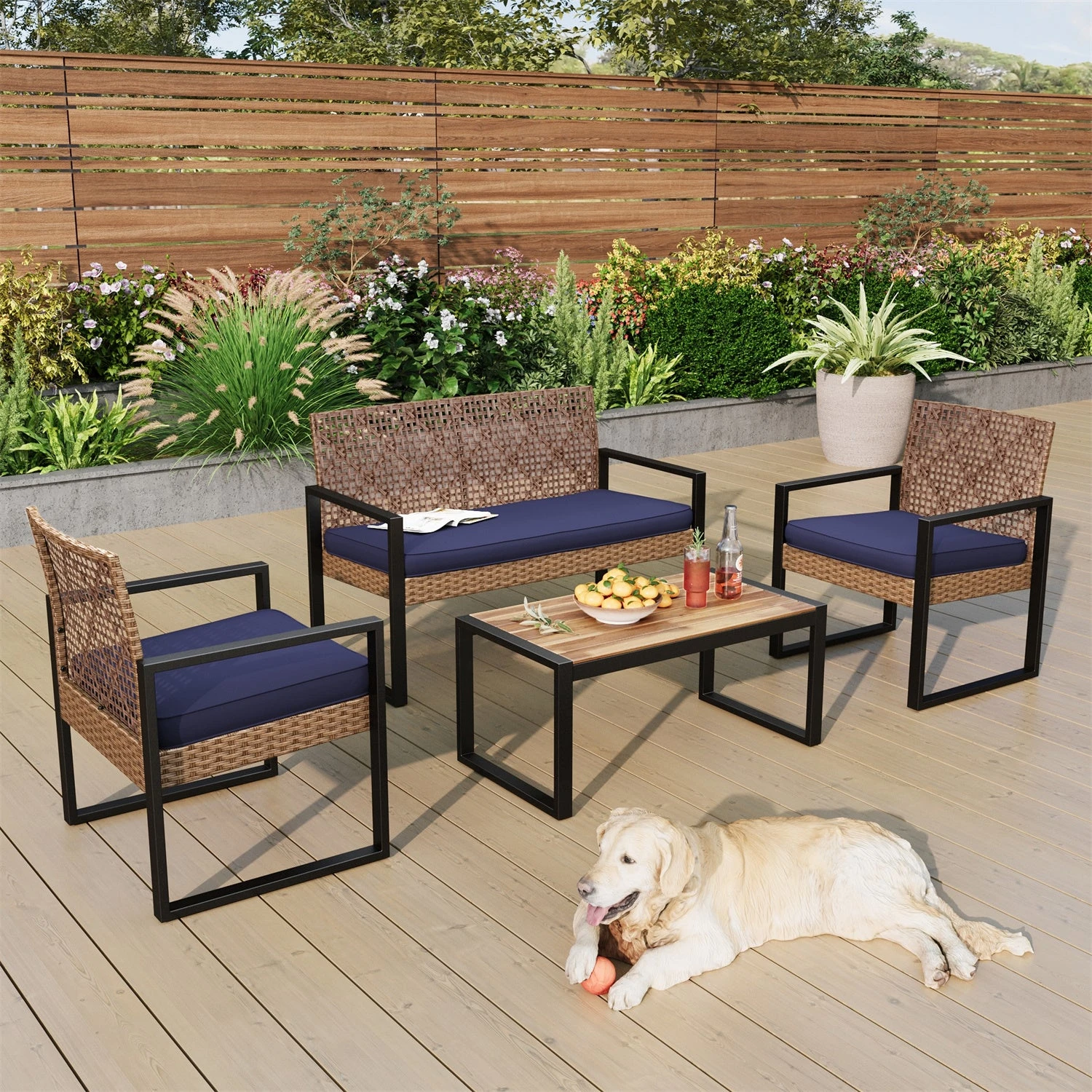 PE Rattan, Acacia Wood, Powder-coated Steel Frame