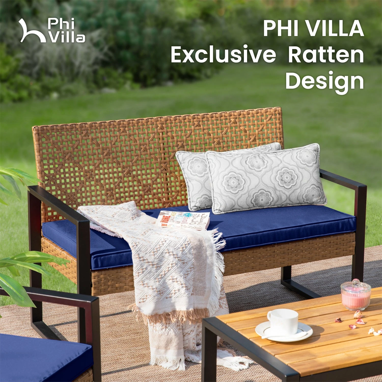 - Versatile Outdoor Seating: This conversation set maximizes versatility with a customizable sectional layout. Ergonomic high backrests and deep seats ensure comfort for conversations or relaxation.