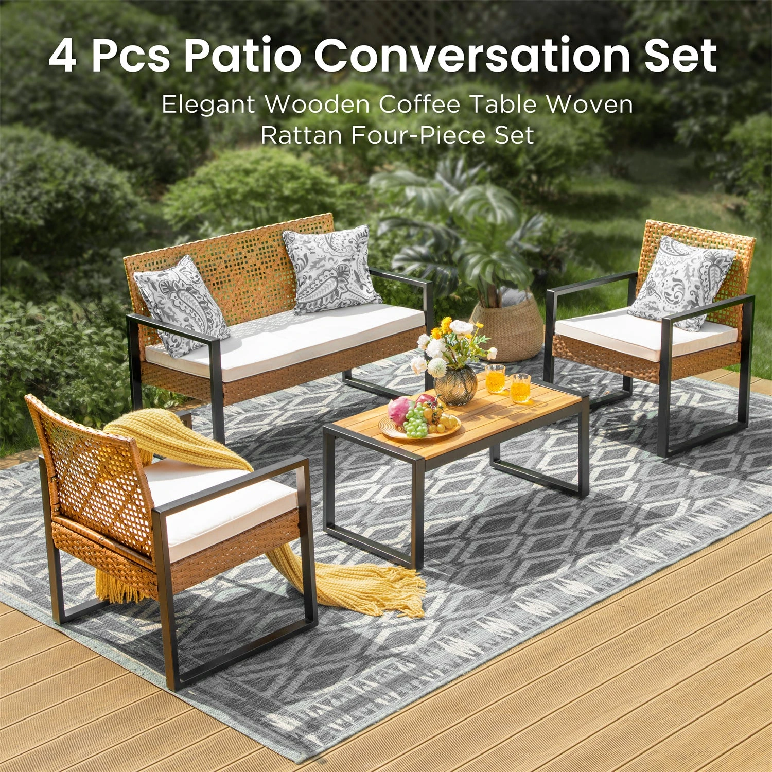 - Premium and Durable Materials: Made with all-weather materials, this set offers great durability. The UV-resistant PE rattan and sturdy metal frame ensure long-lasting beauty and functionality in all weather conditions.
