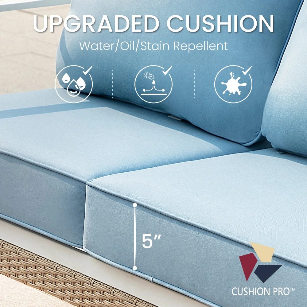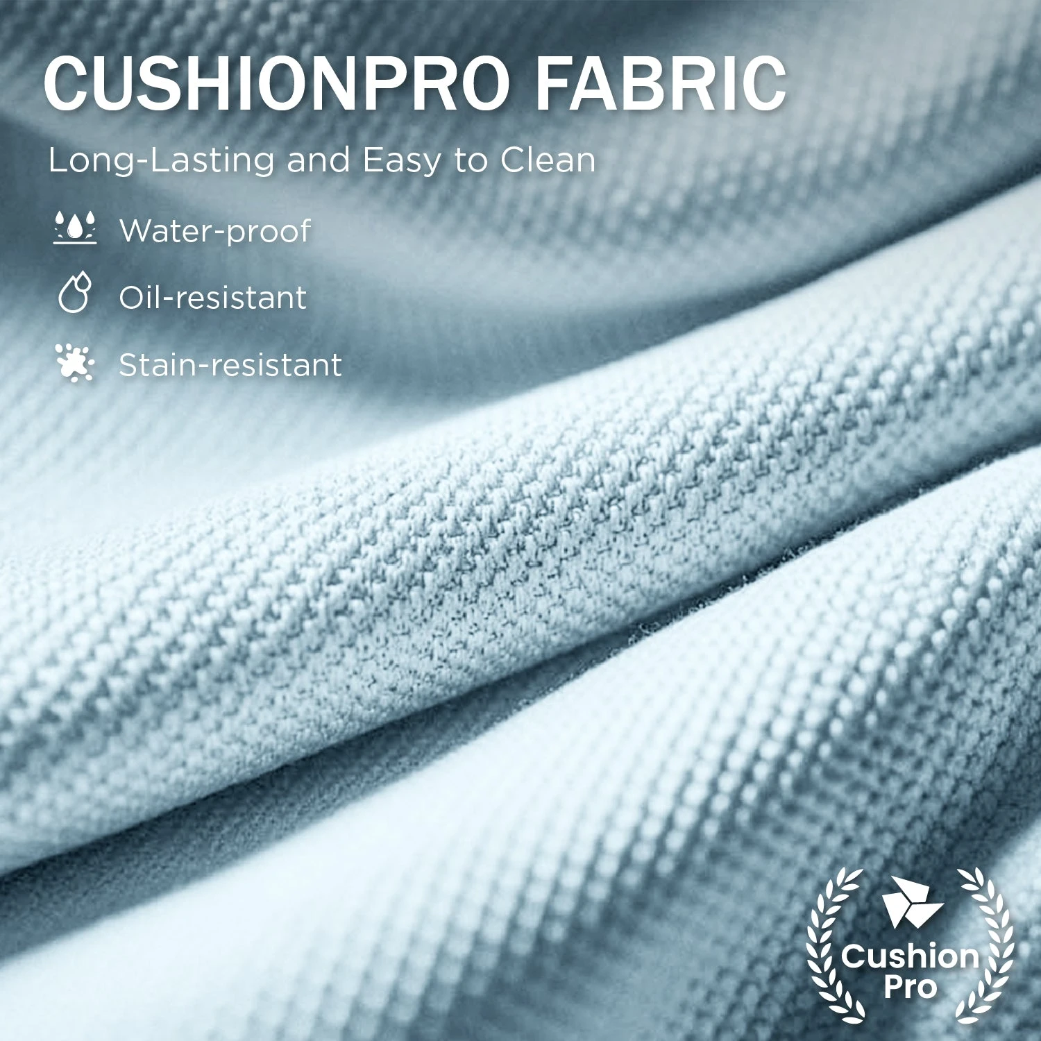 - CushionPro Fabric: Indulge in luxury with our cushions crafted from our patented fabric. They’re waterproof, oil-resistant, and stain-resistant, ensuring durability and easy maintenance with a simple sponge and cleaning spray.