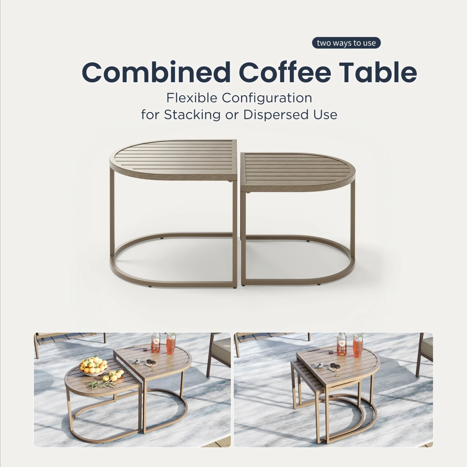 - Wood-Like Metal Frame: Durable frame features advanced e-coating technology and faux wood appearance, combining natural charm with resilience against various outdoor conditions.