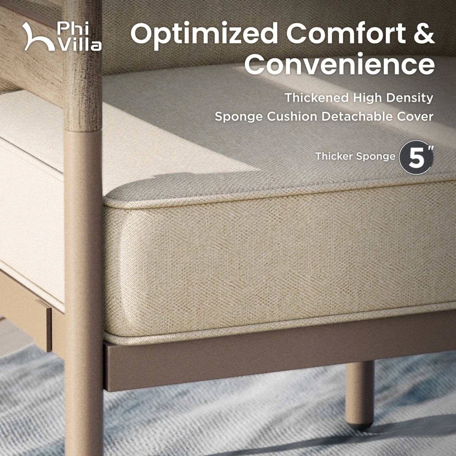 - Spacious Comfort: Generously designed with 5‘’ thick cushions, providing exceptional comfort for a relaxing outdoor experience with family and friends