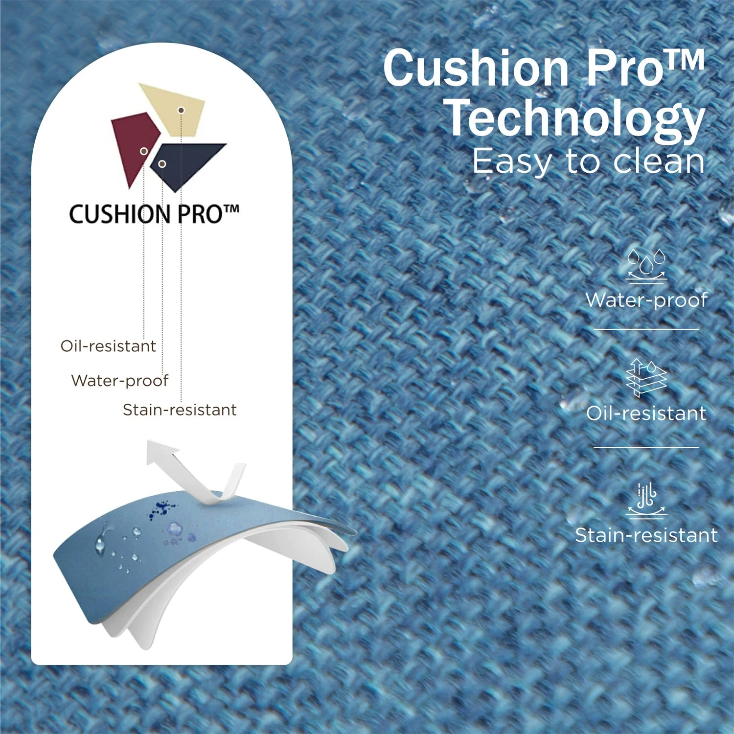 - CushionPro Fabric: Our patented fabric is waterproof, oil-resistant, and stain-resistant, making it easy to clean and ideal for long-term outdoor use.