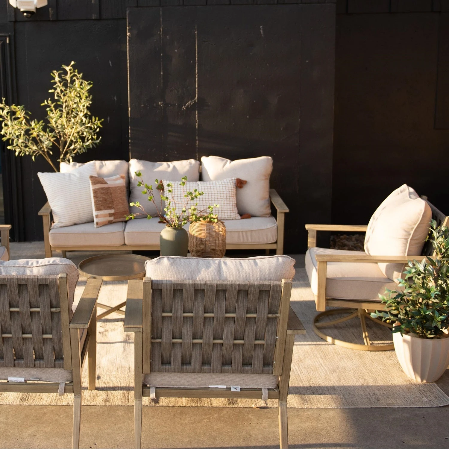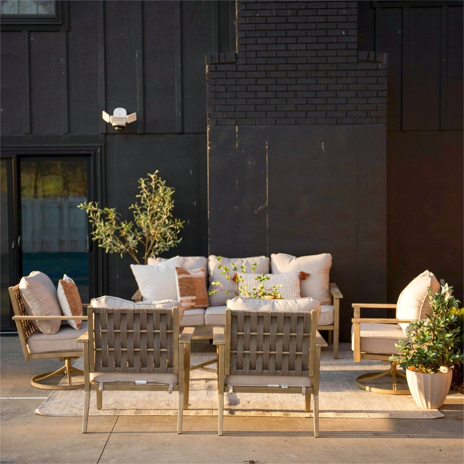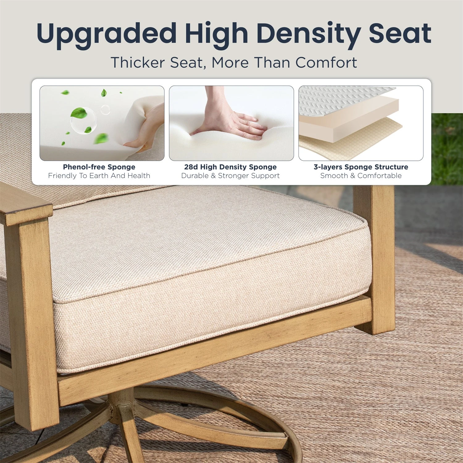 - Wood-Like Metal Frame: Durable frame features advanced e-coating technology and faux wood appearance, combining natural charm with resilience against various outdoor conditions.