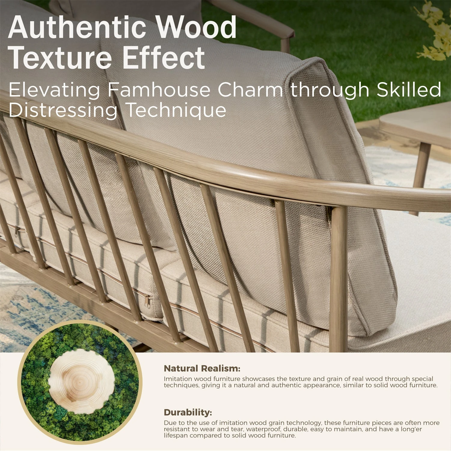 Iron frame with faux wood grain finish, CushionPro Fabric