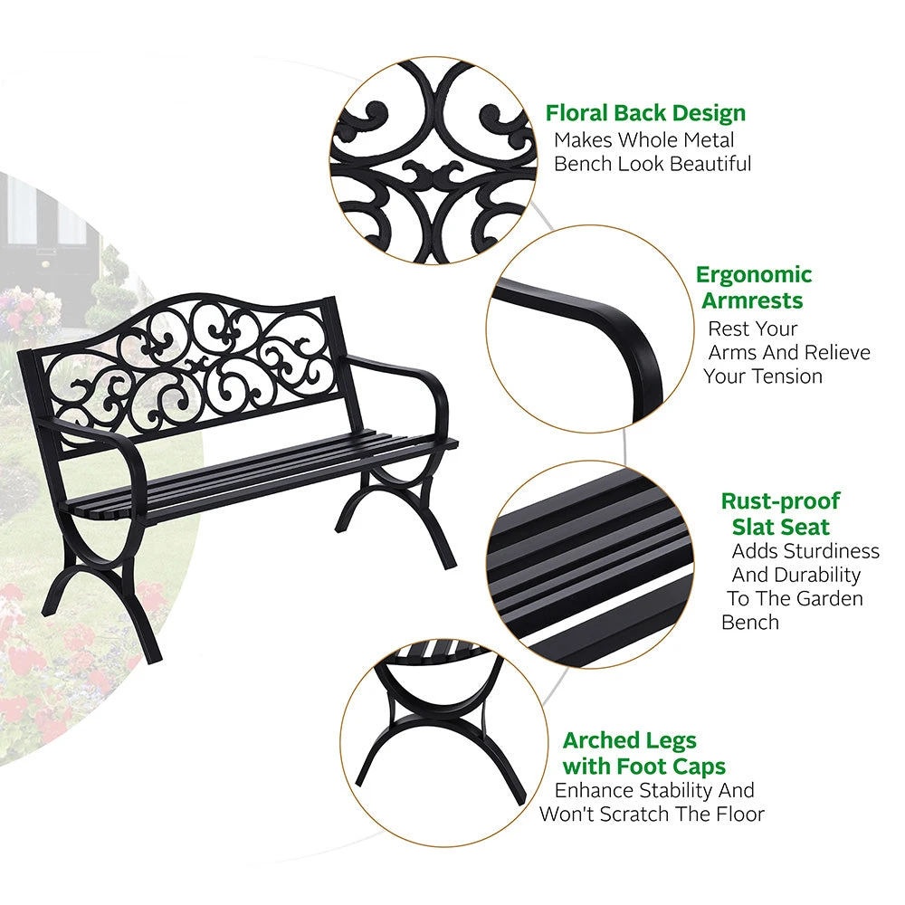 - Durable : Cast iron backrest, powder-coated steel armrests, and seat ensure sturdiness and stability. This durable and rust-proof bench is perfect for long-time outdoor use.