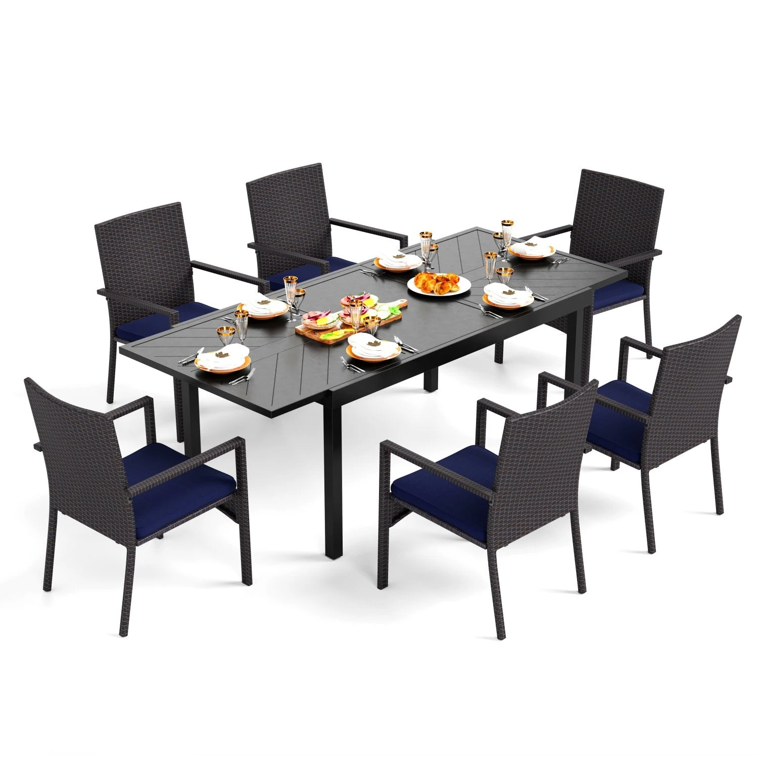 - Extendable Table: Large rectangle surface for 6-8 person, enough space for your leisure time with your friends or family. The line carving pattern design of the tabletop (Table A) & the tilt design of the table legs (Table B) are very fashionable and elegant. Expandable tabletop with 2 sizes (62″ and 84″) meet your actual needs.