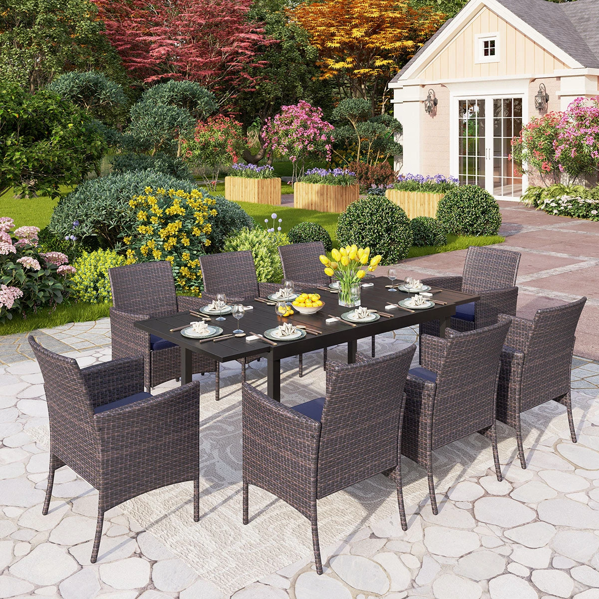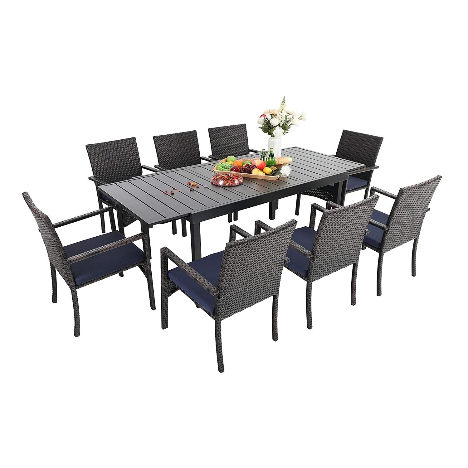 - Versatile Use: 7/9 piece dining set, with its superior quality and deep comfort, turns any backyard, porch, balcony or deck into an elegant dining area. Matches any decor and is suitable for both outdoor and indoor use.