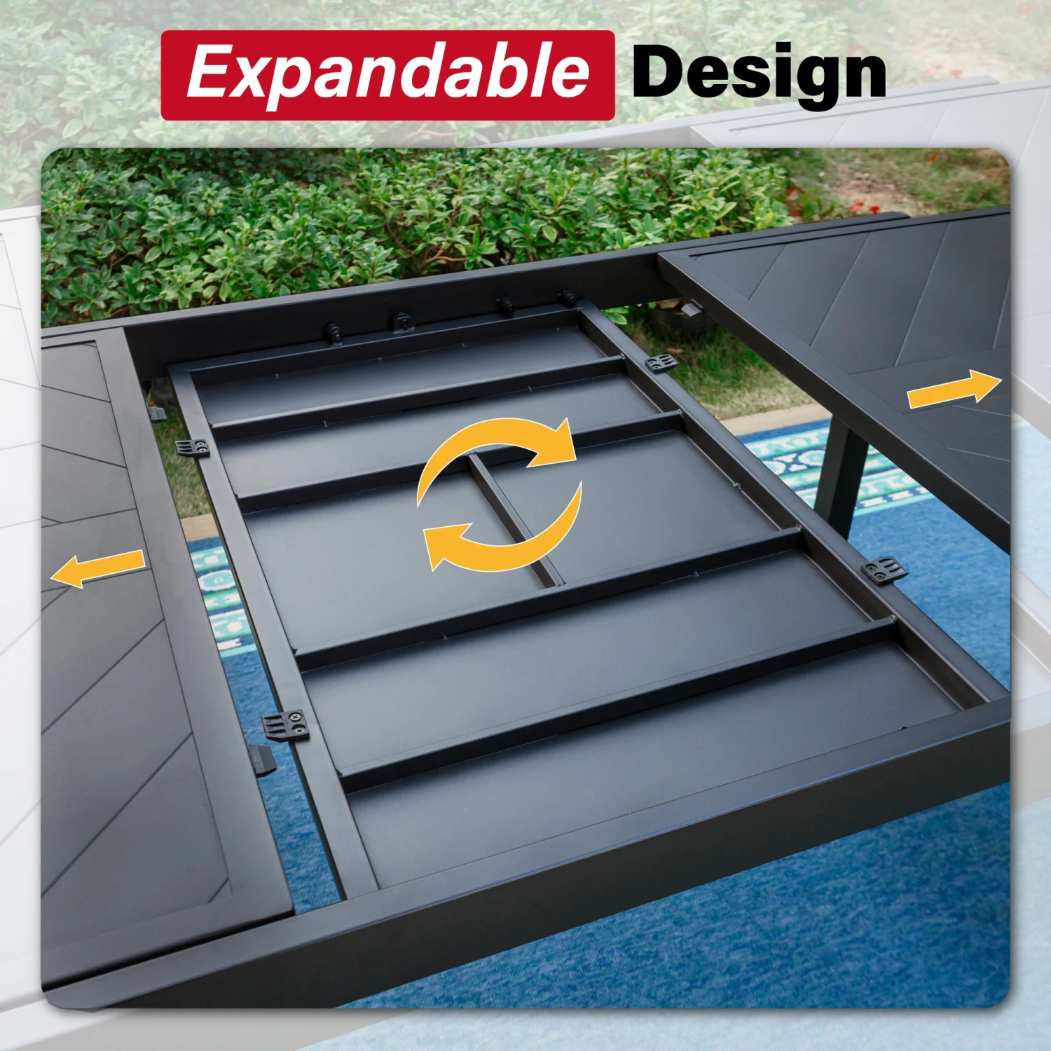 - MORDEN EXPANDABLE DESIGN– Large rectangle surface for 6-8 person, enough space for your leisure time with your friends or family. The line carving pattern design of the tabletop(Table A) & the tilt design of the table legs( Table B) are very fashionable and elegant. Expandable table top with 2 sizes (62″ and 84″) meet your actual needs.