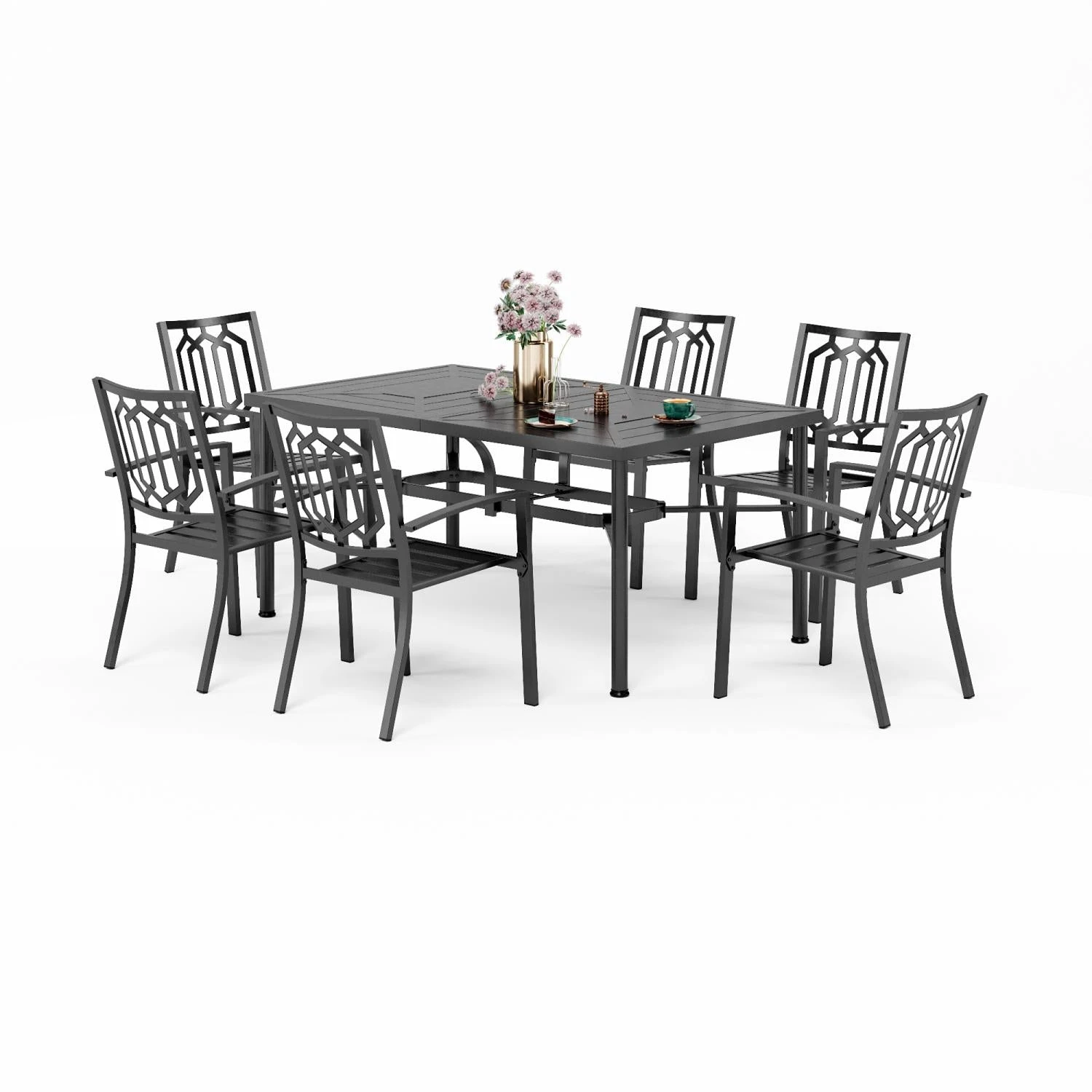 - Style: Back of the chairs have different floral design, each with its own character. Table legs are designed in round shape & Table top is designed with parallel lines, the combination of the two meets modern style, making it match any outdoor space.Â