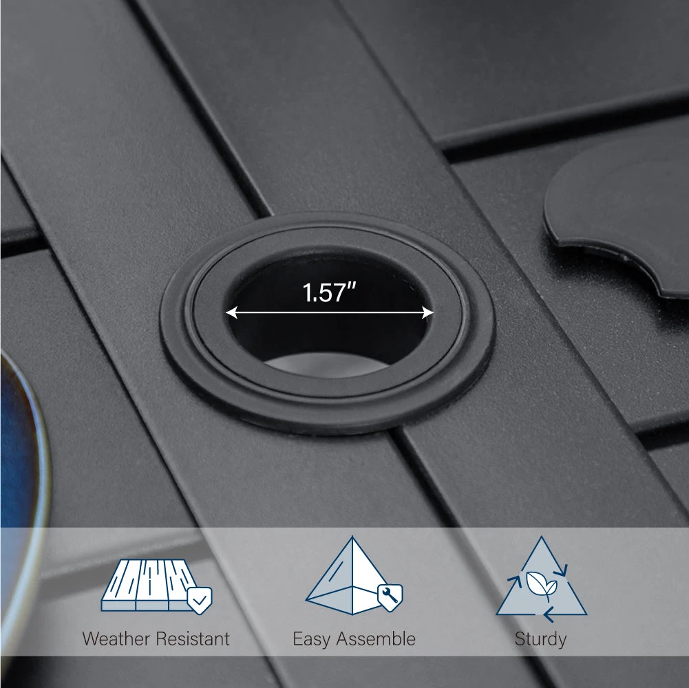 - Horizontal Slat Table: 60″ x 37.8″ x H 28″ H, umbrella hole: 1.57″