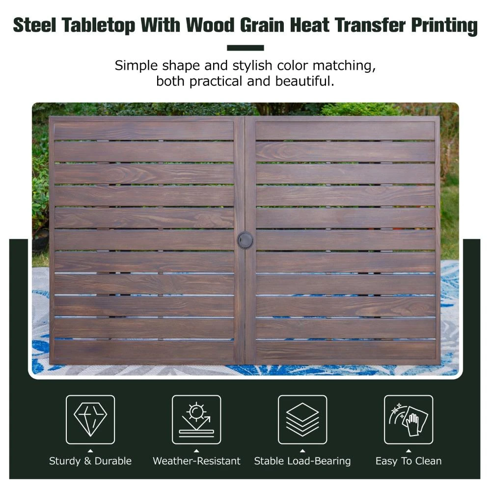 - Sturdy Steel Frame: Sturdy metal steel frame of this outdoor dining set through E-coating & powder-coating treatment (double anti-rust process) ensuring its not easy to rust & more durable than most sets on the market for long-lasting outdoor use.