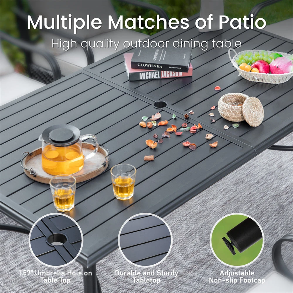 - Umbrella Hole: Design with an umbrella hole that helps fix the umbrellas in position on the tabletop, so you can add an umbrella to protect your food and guests from the bright sun. Easy to assemble with tools provided.