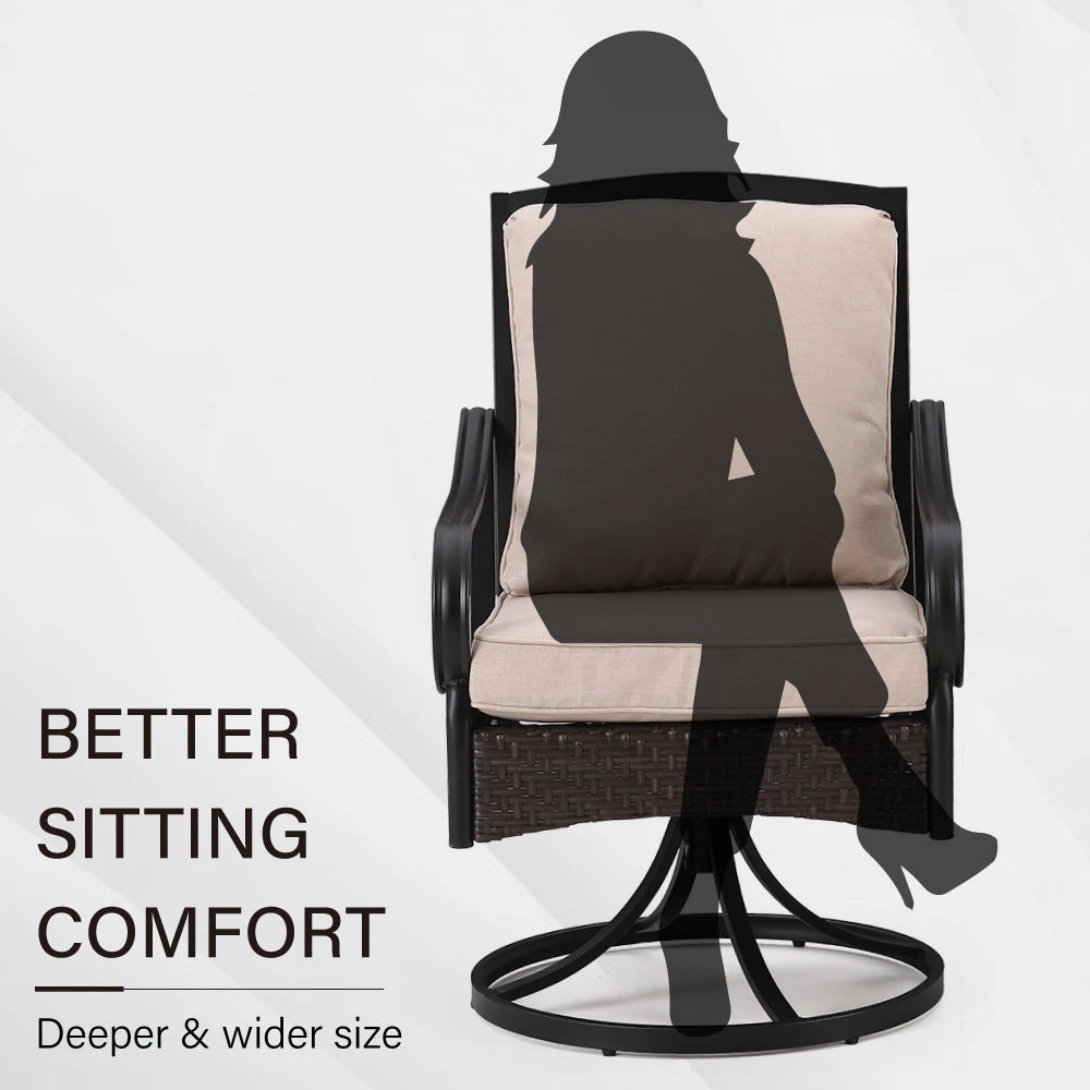 - More Comfortable: Chiars with soft seat & back cushions and 360° swivel design help you relax.