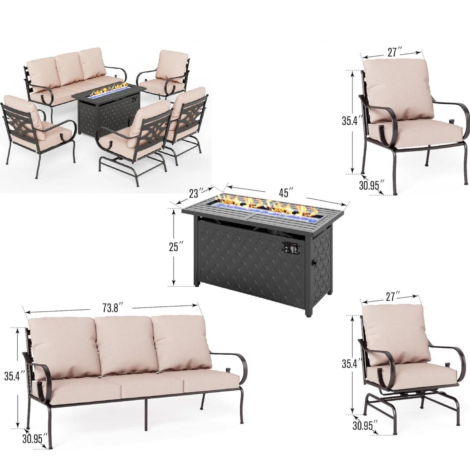 Fire Pit Table: 45’’W x 23’’D x 25’’H