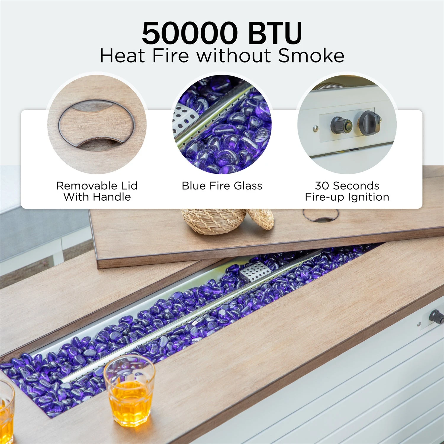 - Safe Design: The fireproof glass provides thermal insulation and aesthetics, while a protective cover keeps the pit clean when not in use, offering real flames without smoke and ashes.