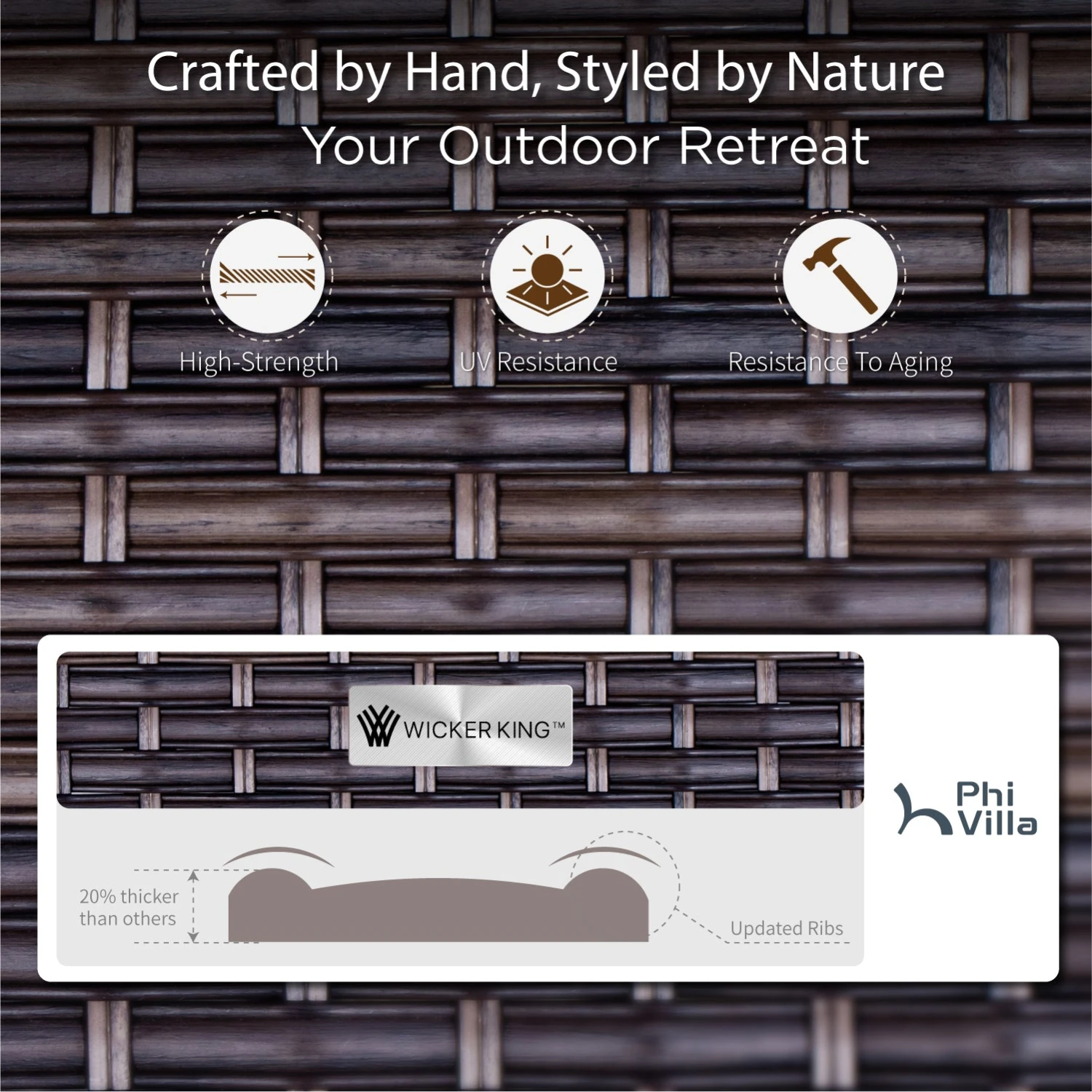 - Reliable Durability: Built from steel and Wicker King rattan, the frame can withstand diverse outdoor conditions, ensuring robustness with advanced e-coating technology.