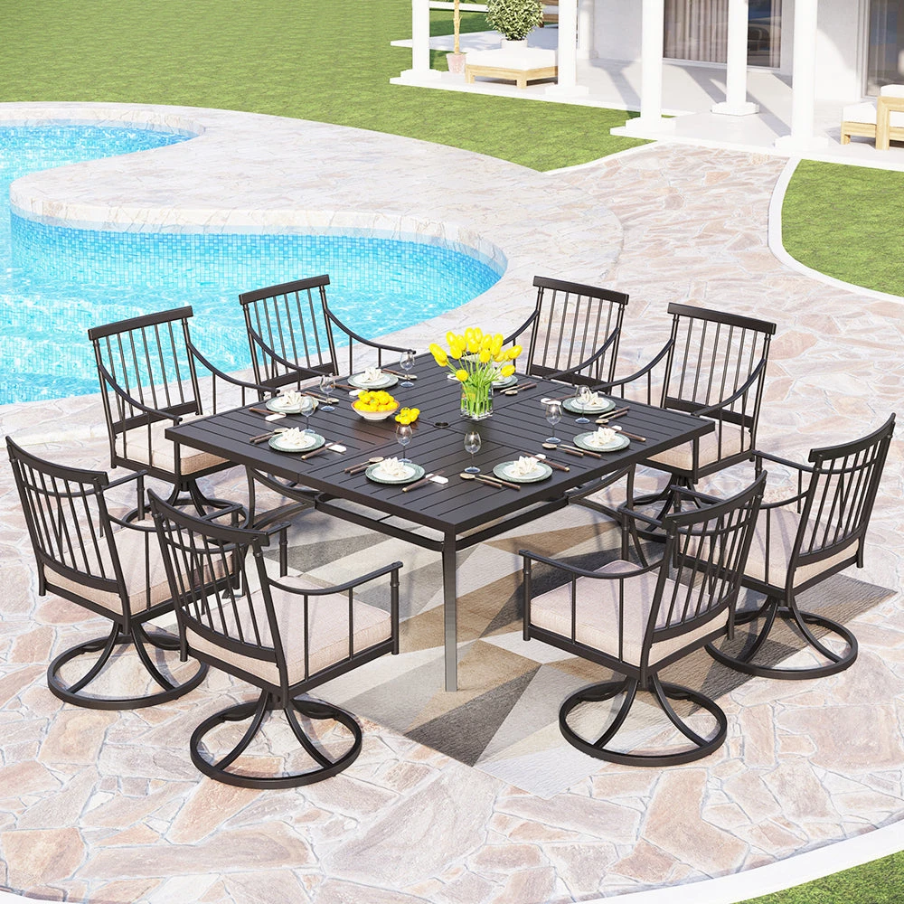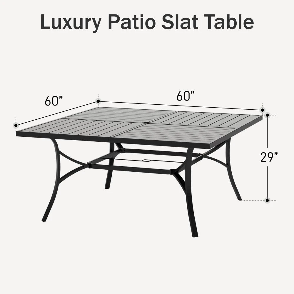 - Enlarged Square Table: The 60″ spacious “wave-basket” tabletop seats 8 comfortably, fostering inclusive dining scenes.
