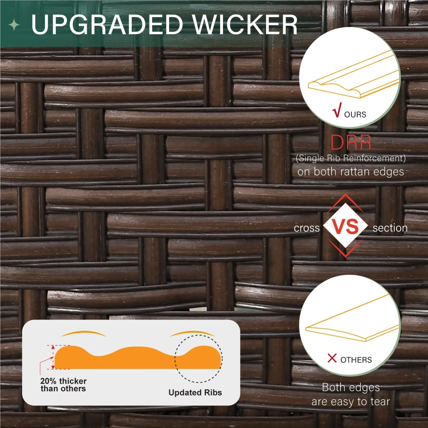 - High-Quality Material: Made of sturdy steel frame and PE wicker, which are strong enough to withstand all weather variations.