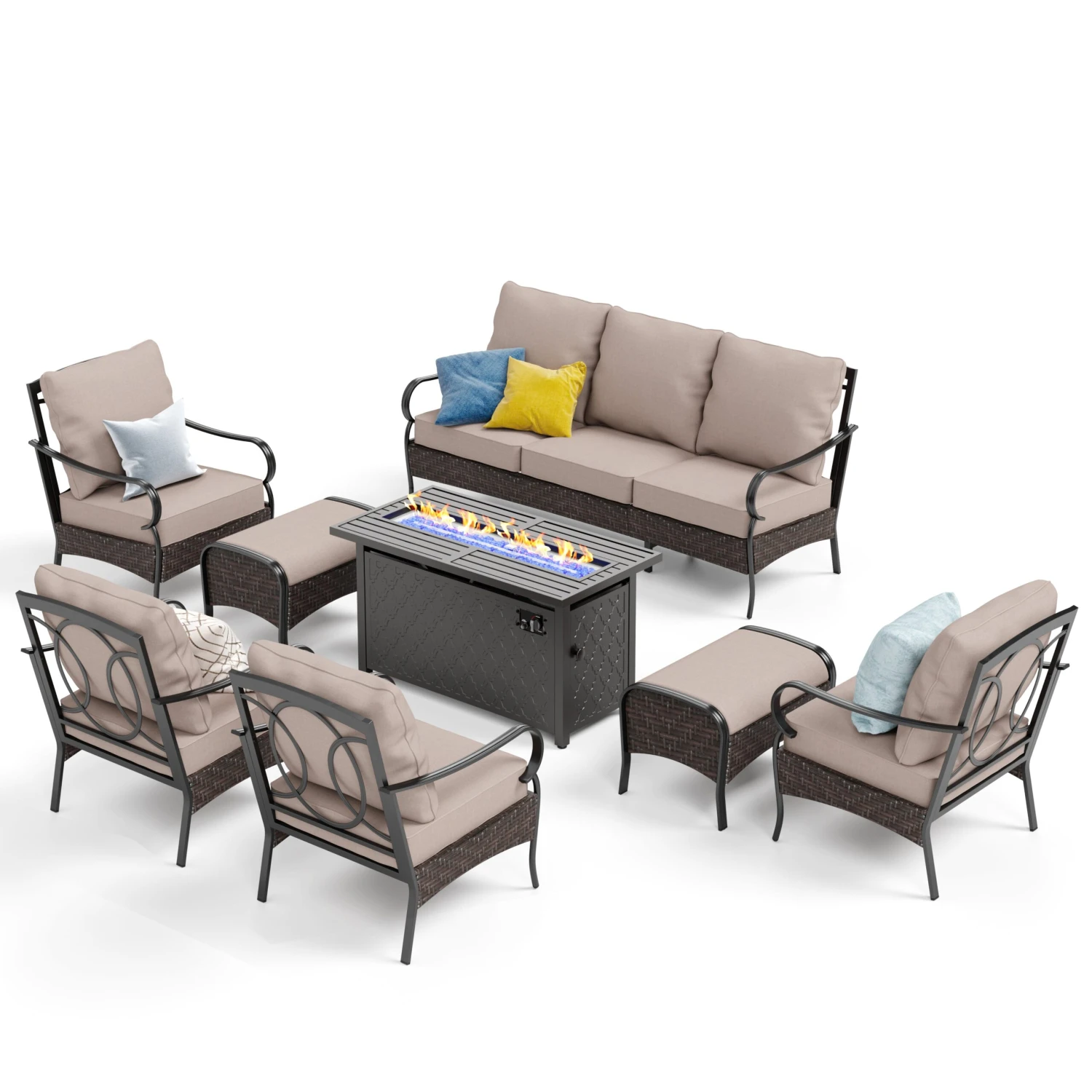 - Package includes: 3-Seat Sofa*1 |1-Seat Sofa*4 | Ottoman*2 | Fire Pit Table*1