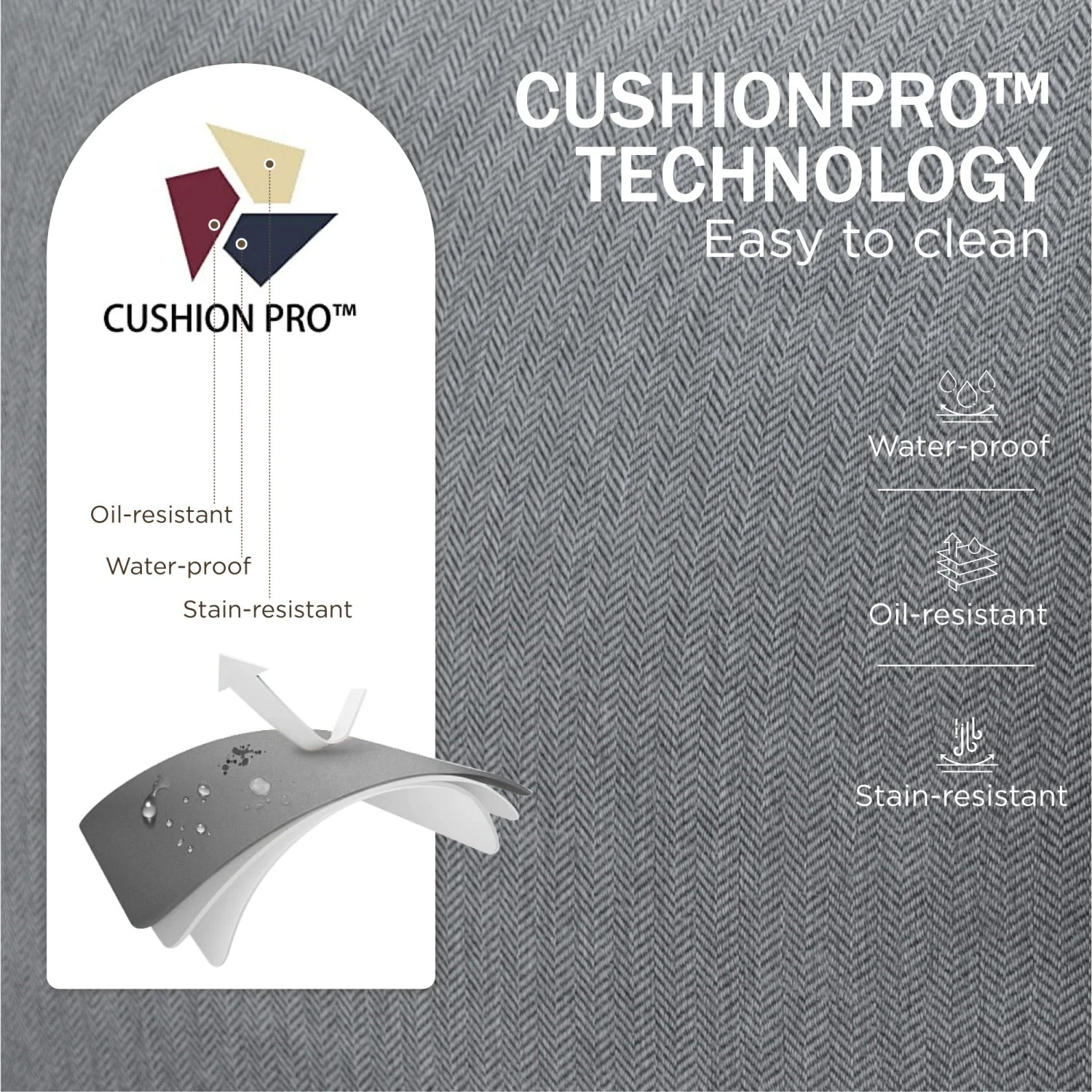 - CushionPro Fabric: Our patented fabric is waterproof, oil-resistant, and stain-resistant, making it easy to clean and ideal for long-term outdoor use.
