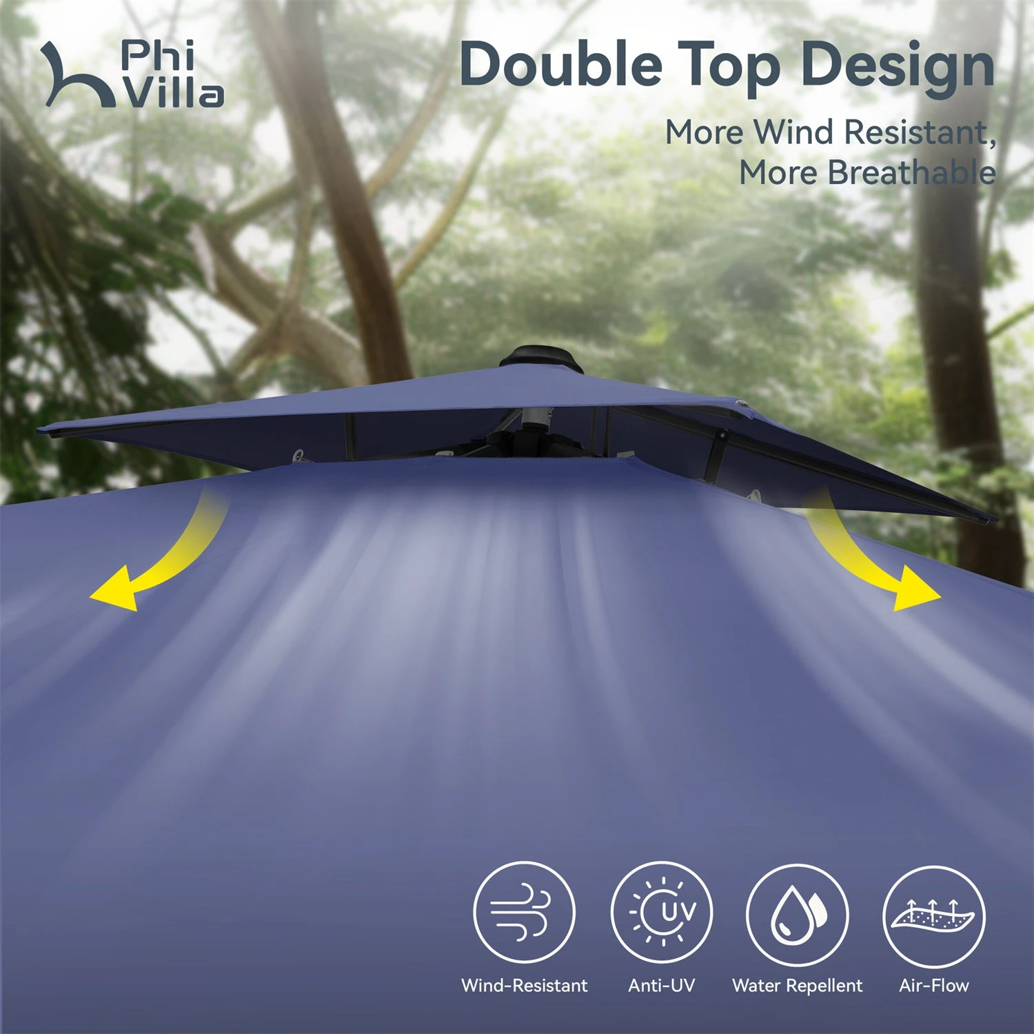 - One Button Open &360° Easy-Adjust: Enjoy effortless operation with the automatic hydraulic mechanism that 360-degree rotations and closes the umbrella smoothly. g feature allows for flexible shade adjustment, ensuring optimal coverage throughout the day.